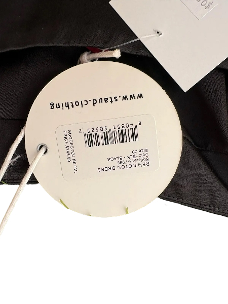 Elevate your evening wardrobe with this chic black satin mini dress by Staud, featuring a smooth, glossy finish and a flattering silhouette that’s perfect for any night out. Minimalist yet striking, this piece combines modern elegance with timeless sophistication.