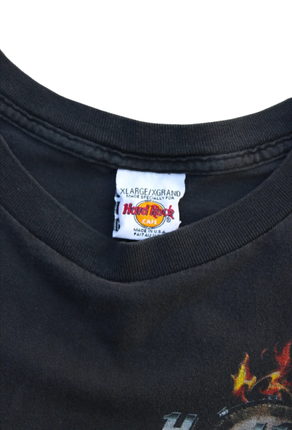This Made in U.S.A 1998 Hard Rock Tee is a must-have for any rock ‘n’ roll fan. The black T-shirt features the iconic Hard Rock logo and is a size XL. It’s perfect for showing off your love for the USA and the Hard Rock brand. This tee is ideal for men who want to add a classic piece to their wardrobe. Whether you’re heading to a concert or just out and about, this T-shirt is sure to turn heads.